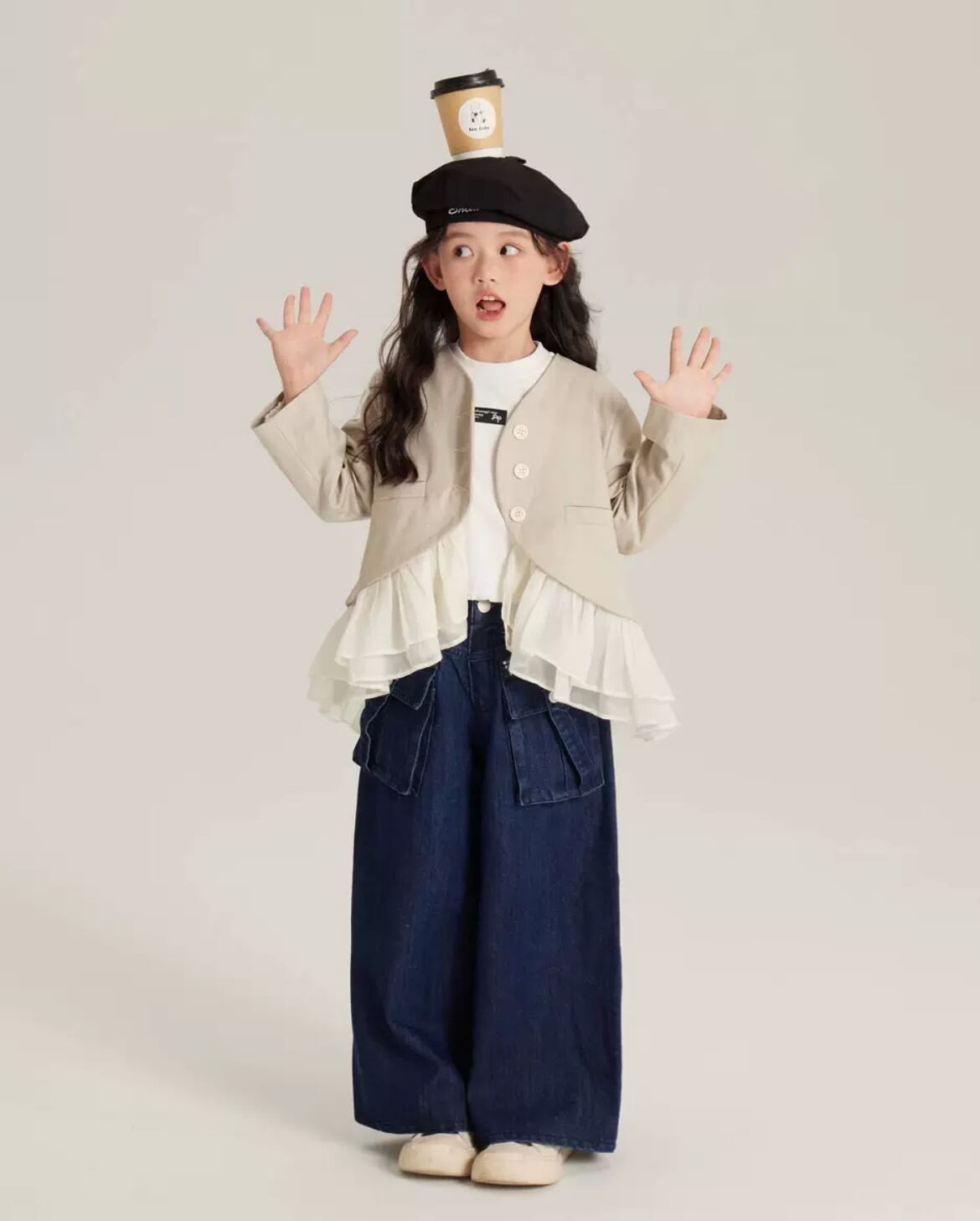 beige ruffle jacket